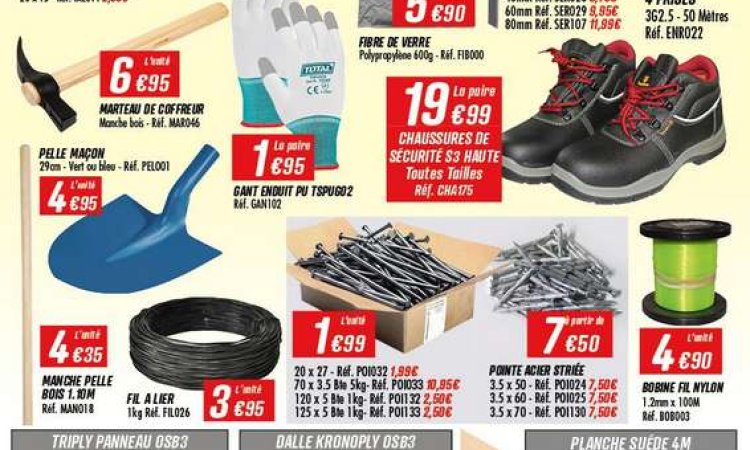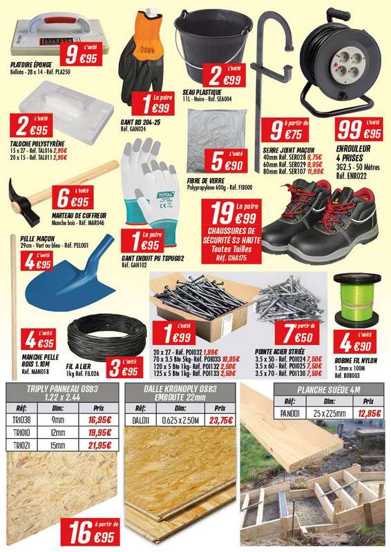 - Bois et panneaux : panneaux OSB, dalles et planches.